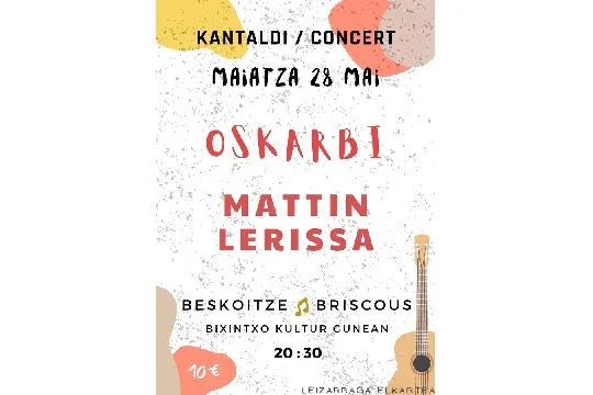 Oskarbi + Mattin LerissaDatos del eventoDondeEspace Culturel BixintxoCuando28/05/2022ComentariosInicia sesión para poder comentar.Inicia sesión