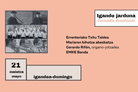Musikaste 2023: Igande Jarduna (Errenteriako Udal Txistulari Taldea + Mariaren Bihotza Abesbatza + Gerardo Rifón + EMKE Banda)Noiz21/05/2023